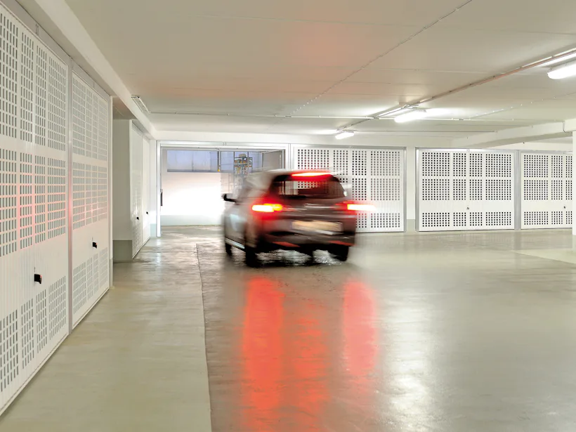 Výklopné brány Berry sa mimoriadne hodia v hromadných garážach vďaka ich robustnej konštrukcii, nekomplikovanej obsluhe ako bezpečný uzáver parkovacích miest. Rozdielne vetracie otvory zaručujú optimálne vetranie.
