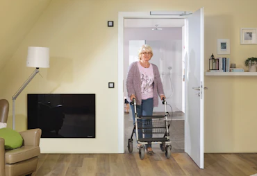 Chcete byť napriek telesným obmedzeniam naďalej mobilný? Pohon PortaMatic pre vnútorné dvere Vám vráti späť kúsok z kvality života tým, že Vás podporí pritom, aby ste sa mohli pohybovať po Vašich miestnostiach bez cudzej pomoci.